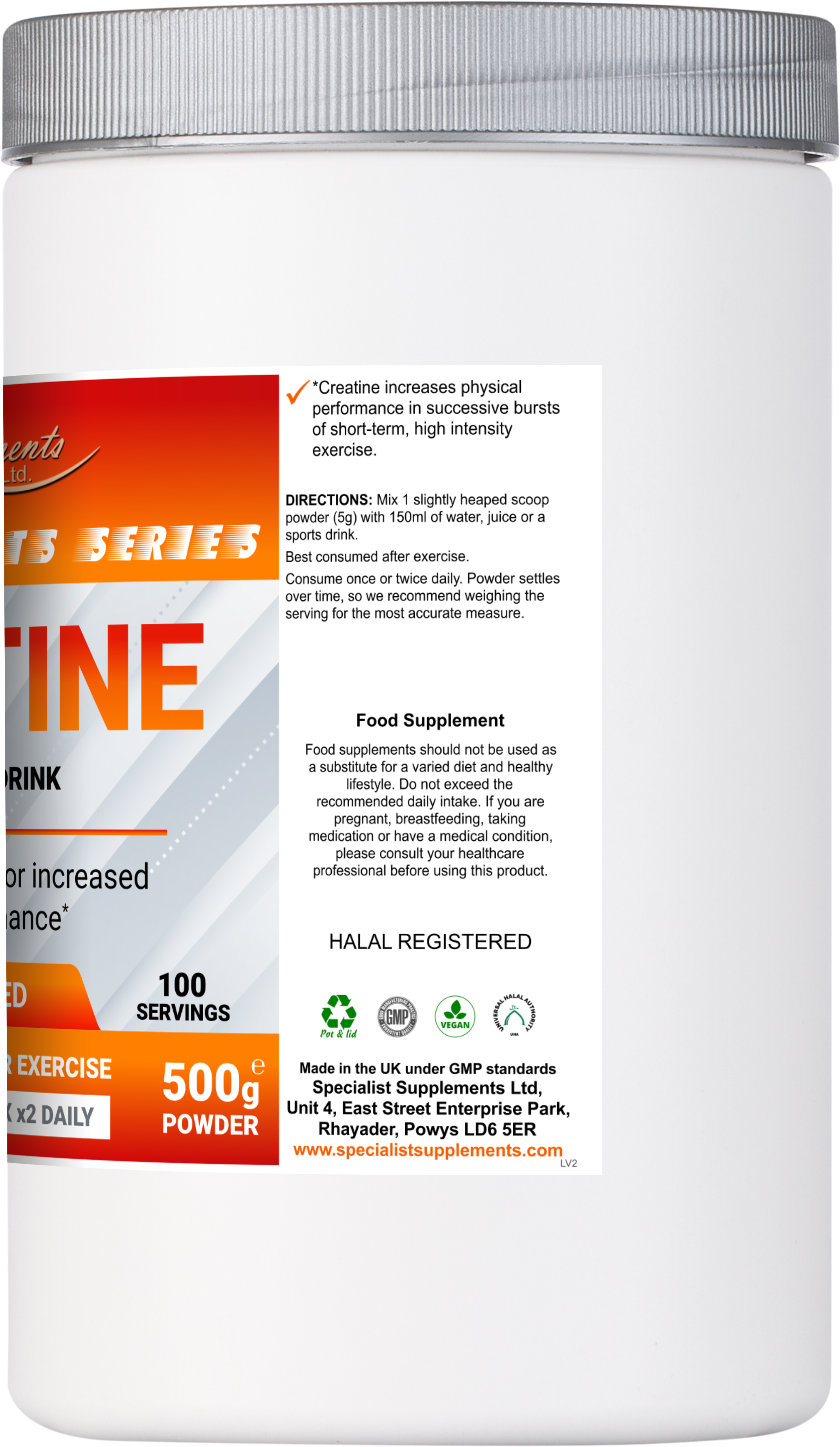 500g powder (unflavoured): Part of our Sports Series, Creatine is an easy-to-mix drink, which contains creatine monohydrate for increased physical performance in terms of speed, power and strength.